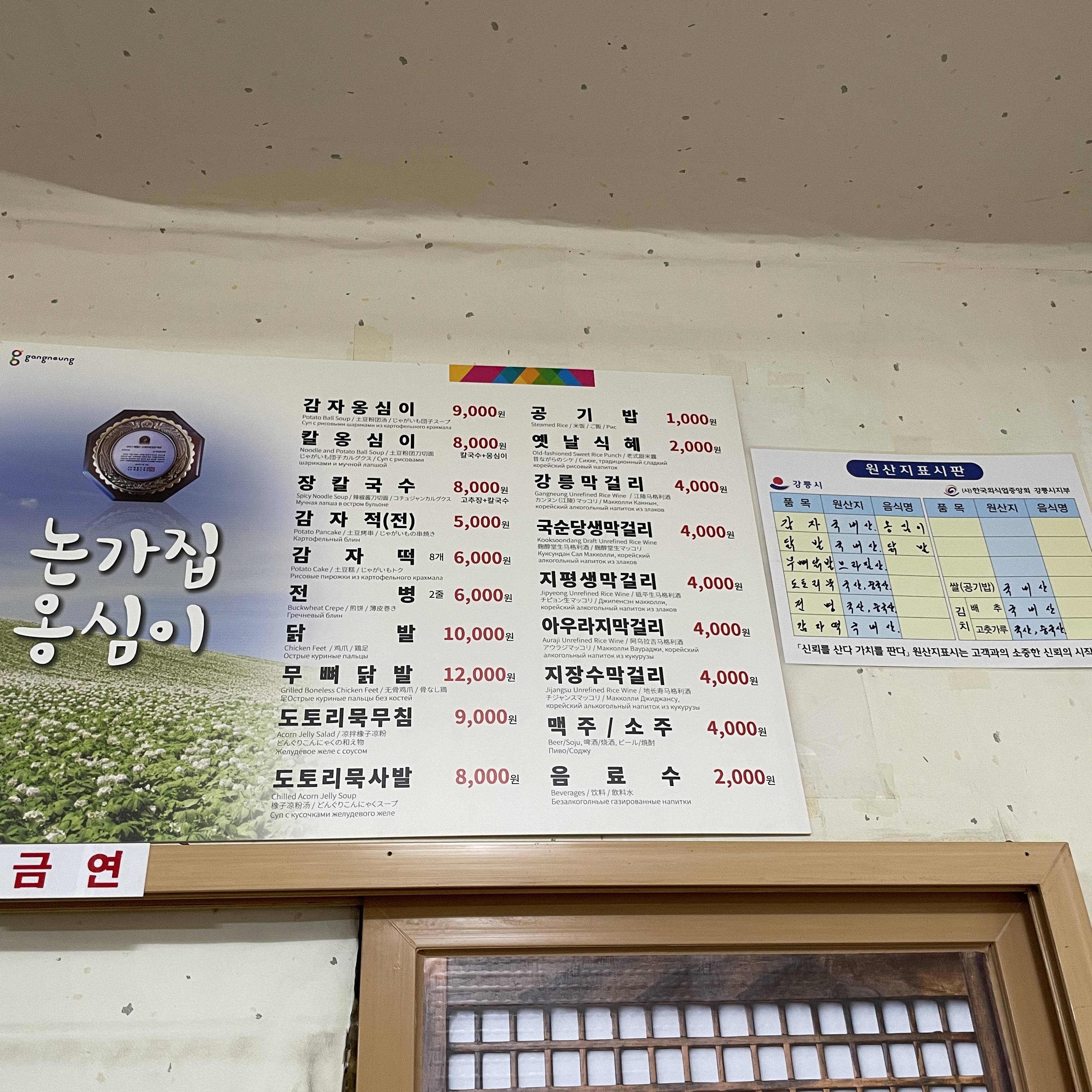 강릉해변 안목항과 가까운 감자옹심이 맛집 논가집이었습니다.