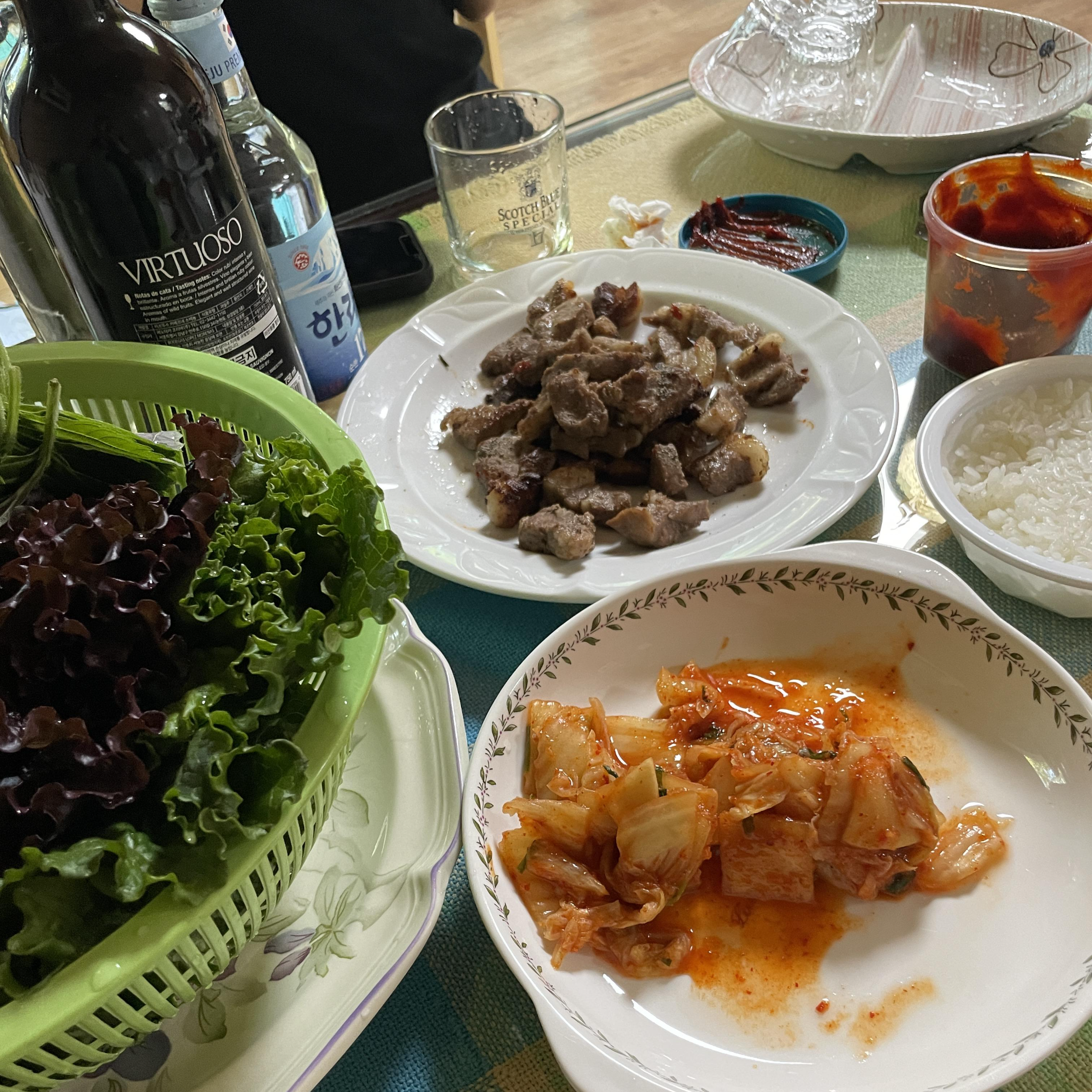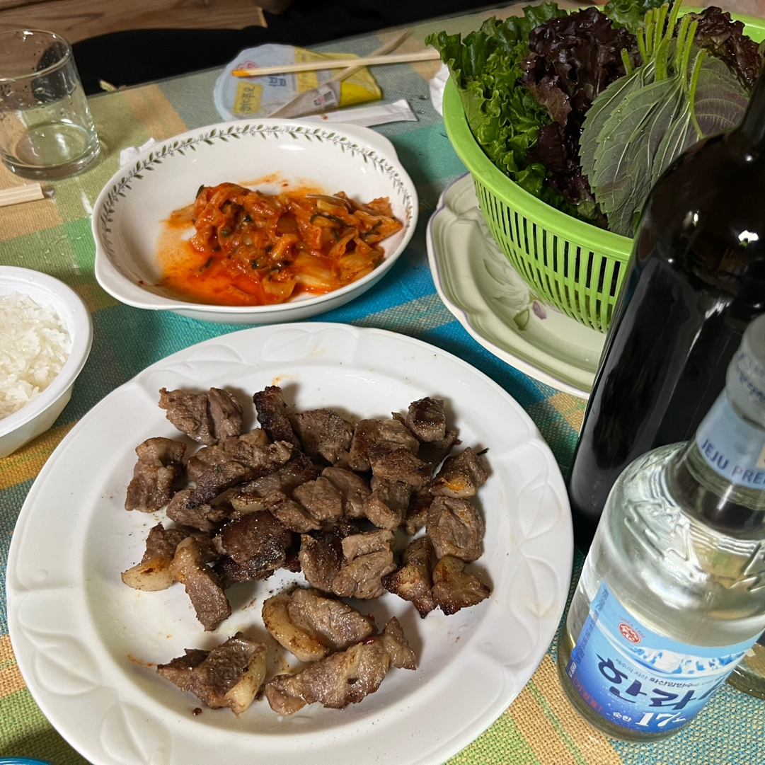 이날도 우린 제주도 흑돼지를 사 와서 요리해 먹었다죠:)