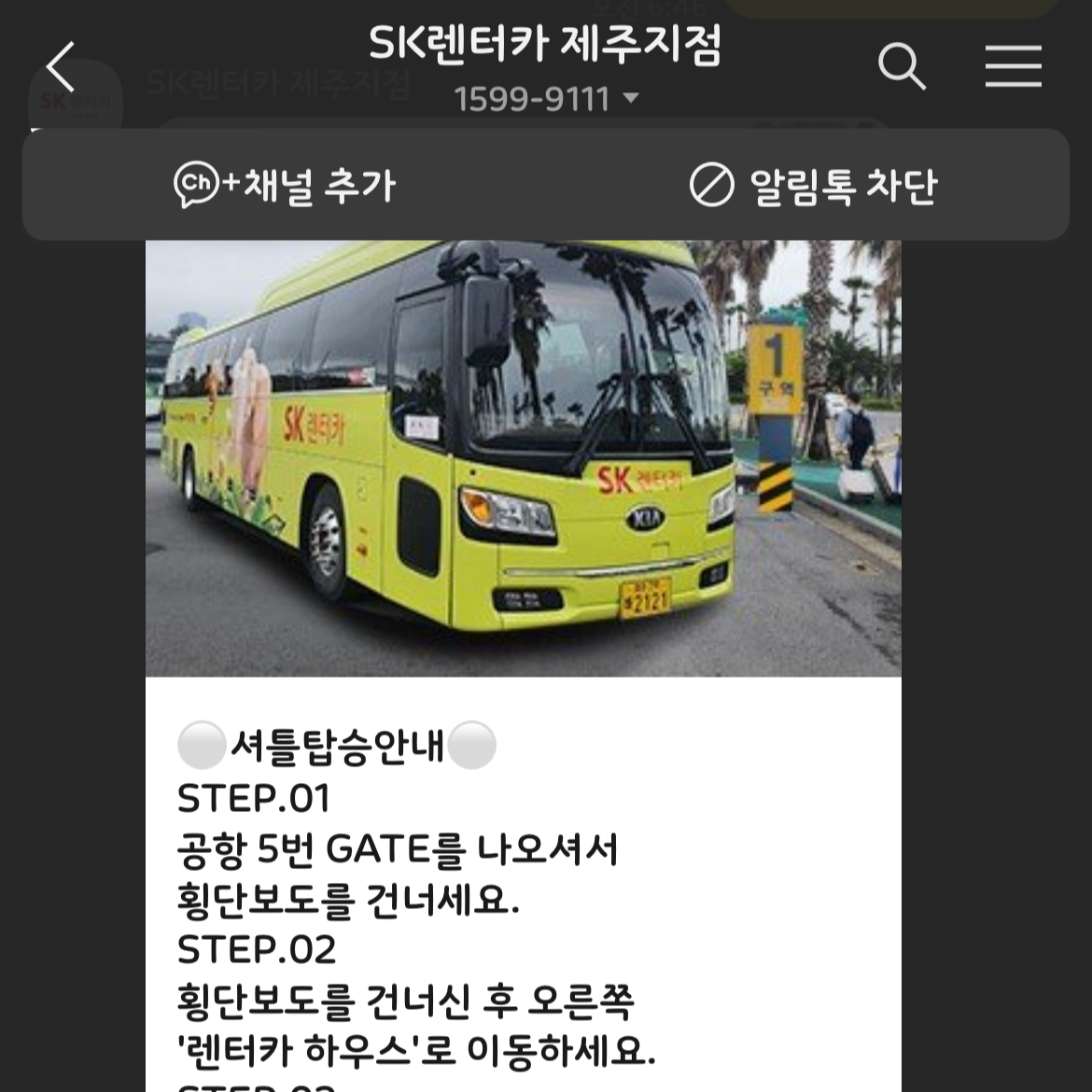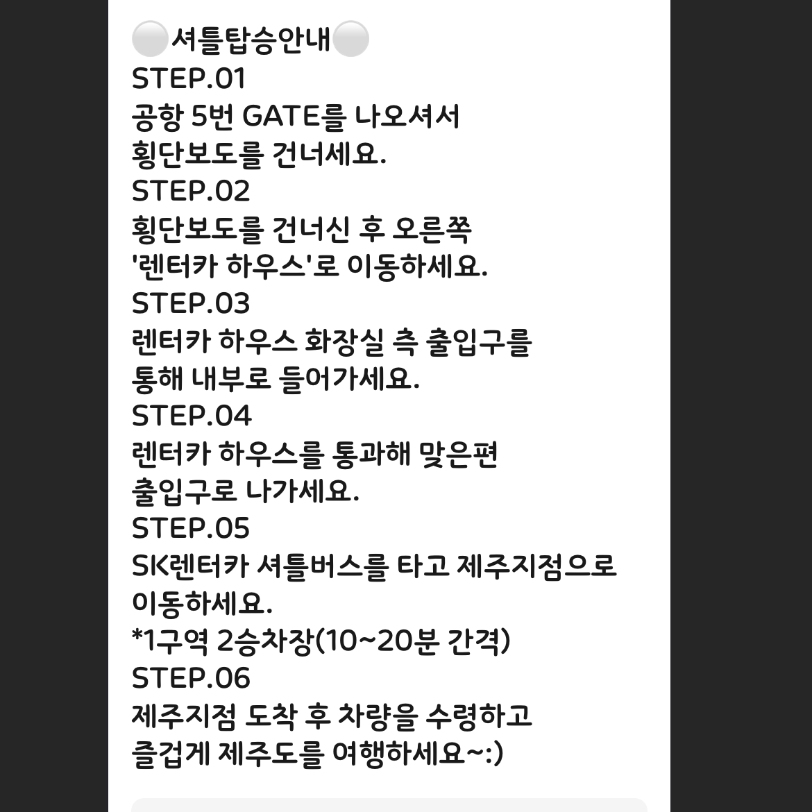 공항에서 sk렌트카 셔틀구역에서 셔틀 타고 sk렌트카도착