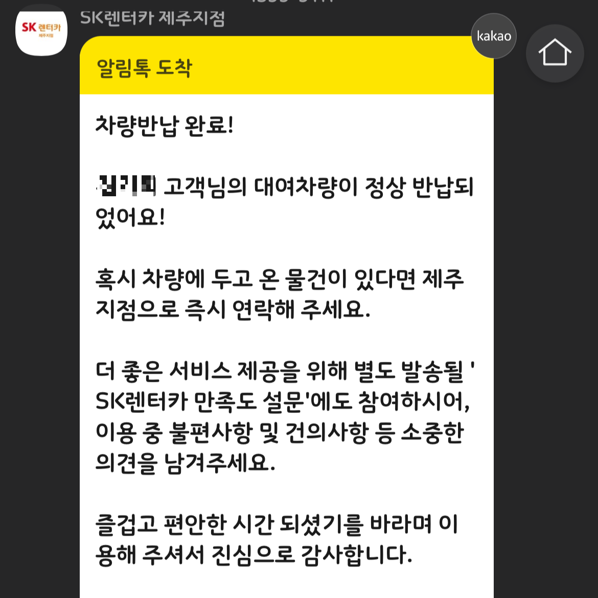 반납이 완료되면 톡으로 또 바로바로 오고 차 상태도 좋고