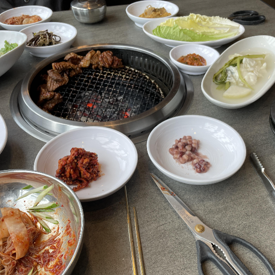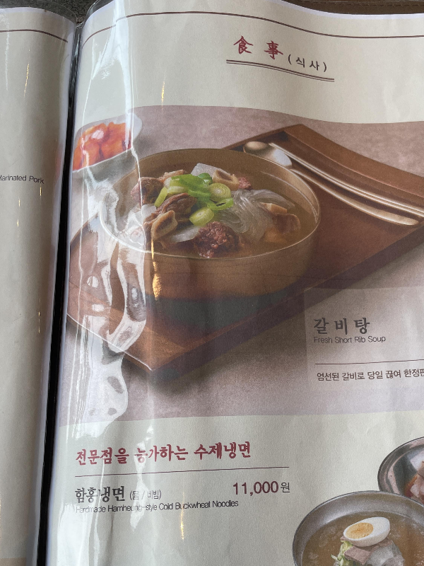 메뉴는 다양하게 준비되어 있으며, 특히 한우, 육회, 갈비찜, 고기구이 등 다양한 고기 요리로 유명해요. 개인적으로는 돼지갈비와 소갈빗살을 좋아하는 편이에요.