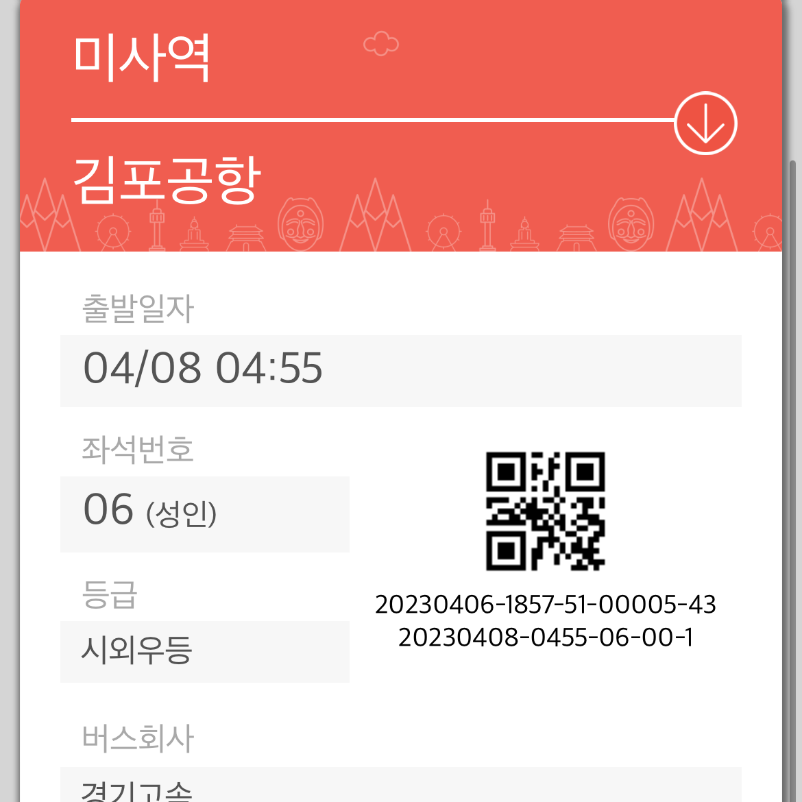 미리미리 좌석선택과 큐알 준비는 센스^^