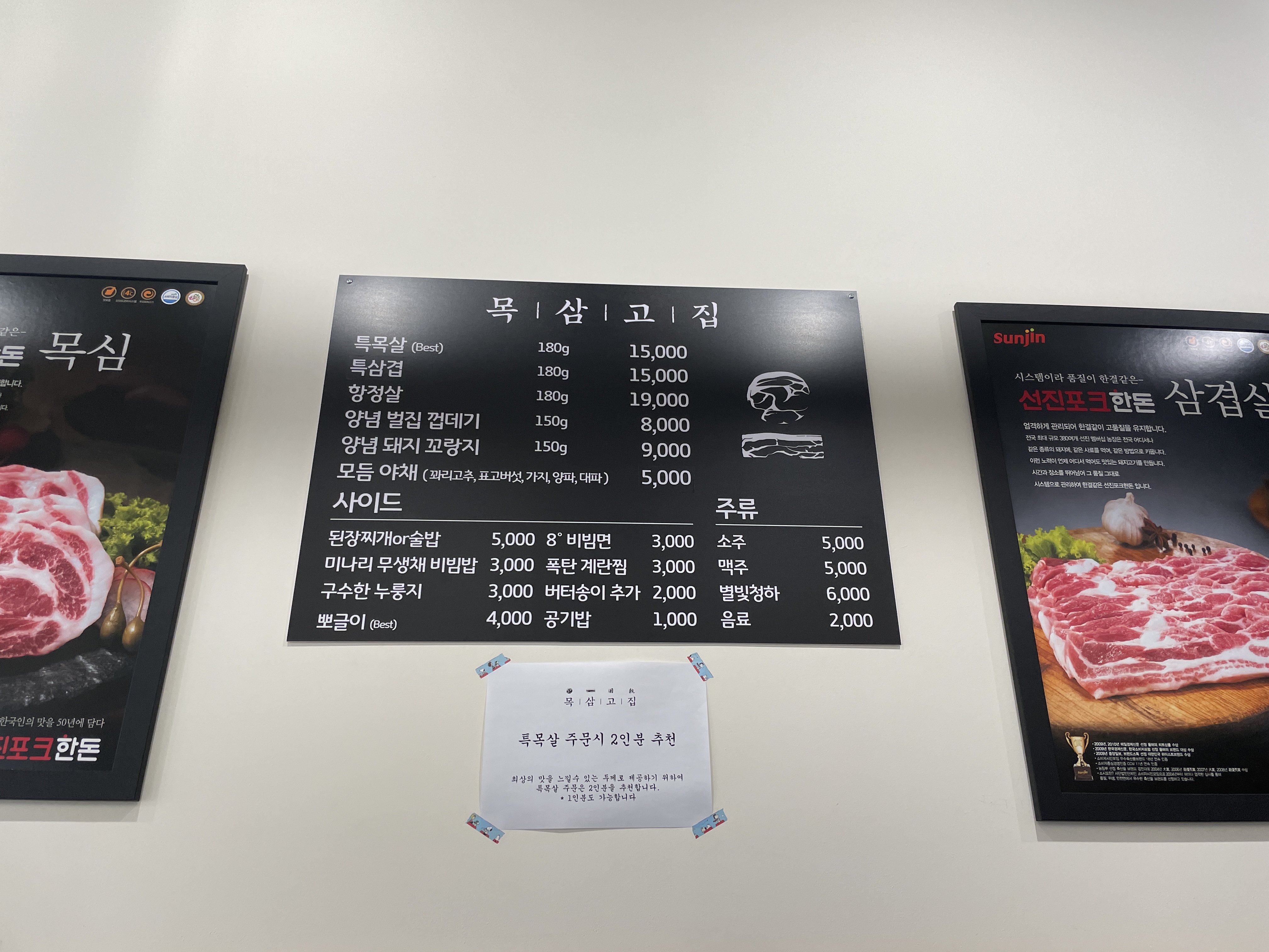 하남 미사 목삼고집의 목살은 2인분 추천드려요. 이유는 그래야 두껍고 고기가 맛있거든요. 다 이유가 있더라고요.